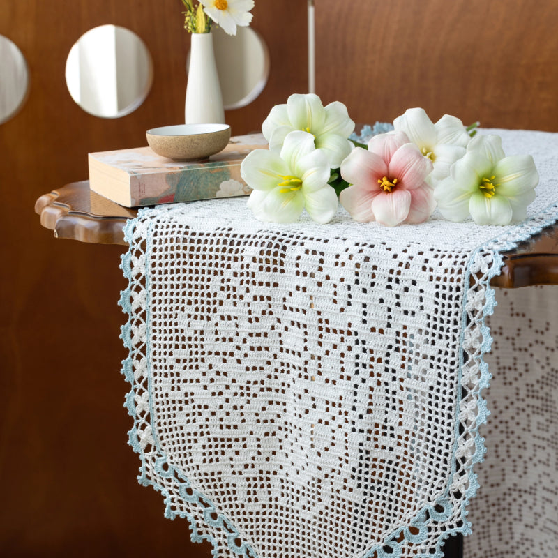 The size of the finished product is about Table Runner: 174 x 38 cm; Sofa Throw: 132 x 102 cm.